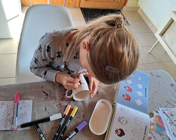 Il y a des jours « avec » et des jours « sans » mais Émilie transforme tout en positif et cela fait du bien ! Evidemment, ma fille a ensuite profité des ateliers créatifs d’Émilie :amusement, découverte, manipulation de matériel divers et varié... L'imagination d’Émilie n'a pas de limite quand il s'agit d'épanouir les personnes qui passent la porte de son cabinet.